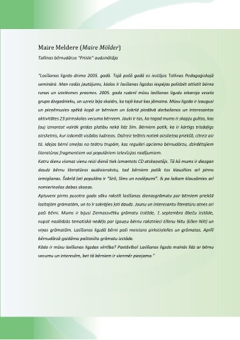 “Lasīšanas ligzda dzima 2005. gadā. Tajā pašā gadā es iestājos Tallinas Pedagoģiskajā